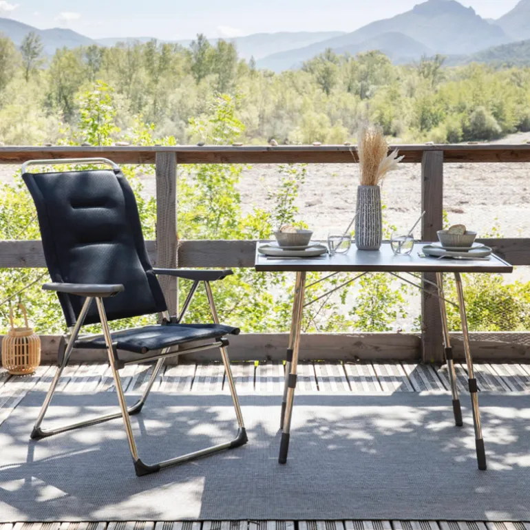 Portate il comfort con voi in campeggio con la Alu Cham. Questa poltrona richiudibile è dotata di un notevole schienale alto ed ergonomico. Possiede cinque posizioni regolabili molto semplicemente per soddisfare tutte le vostre voglie di relax. è davvero la compagna ideale per le vacanze nomadi o per pause di svago in giardino o in terrazza.
