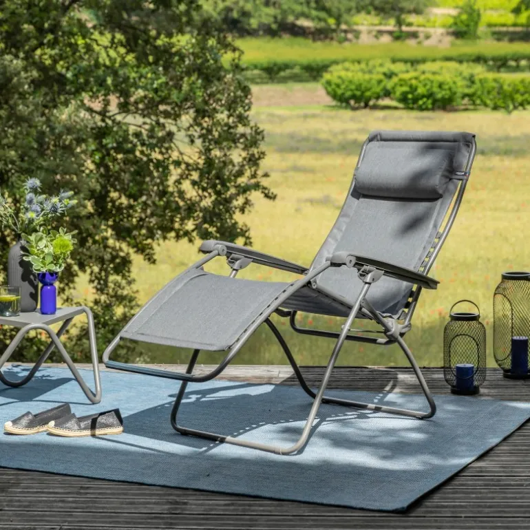 La sdraio-poltrona relax RSX CLIP e la versione imbottita della classica e intramontabile sdraio-poltrona relax con clip, fabbricata con materiali di qualità. Leggera e richiudibile, robusta e pratica, è la compagna dei bei momenti all’esterno o all’interno. Lo schienale ergonomico offre un comfort equilibrato e un buon sostegno della schiena grazie ai fissaggi con clip che arrivano fino all’altezza delle spalle. Poggiatesta ergonomico, regolabile e removibile che vi consentirà di regolarla perfettamente per il massimo comfort. I braccioli ergonomici con effetto ondulato si sposano perfettamente con l’avambraccio grazie all’incavo a livello del gomito e la forma bombata all’altezza del polso.