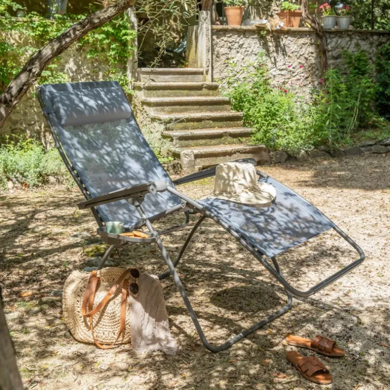 – Tela: Batyline® ISO. Tela removibile e sostituibile con fissaggio tramite clip in elastomero (brevetto LAFUMA MOBILIER).