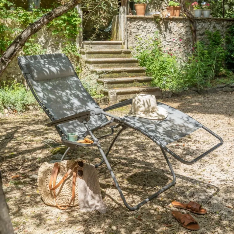 – Tela: Batyline® ISO. Tela removibile e sostituibile con fissaggio tramite clip in elastomero (brevetto LAFUMA MOBILIER).