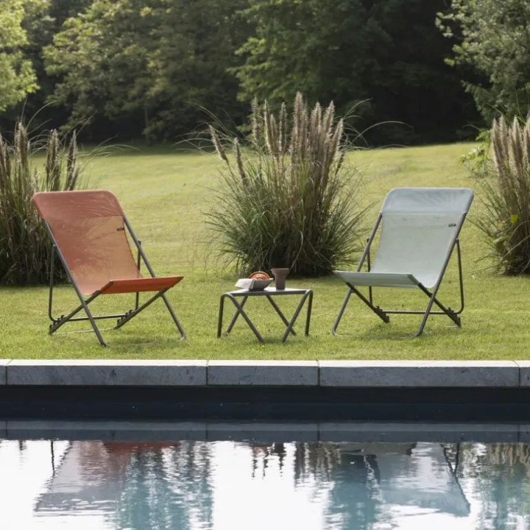 Il vero lusso è anche una questione di spazio! La sedia sdraio MAXI TRANSAT vanta dimensioni generose e si adatta a tutte le esigenze di comfort. Inoltre, l’assenza di traverse nella parte anteriore della seduta offrirà alle vostre gambe un eccezionale comfort. La tela removibile è facilmente sostituibile per rinnovare la sedia a sdraio o semplicemente per cambiare look. La chiusura con cremagliera in quattro posizioni vi consentirà di regolare l’inclinazione dello schienale per ottenere il comfort ideale. Robusta, ultra compatta e facile da pulire, a suo agio in terrazza, in giardino, così come a bordo piscina. Facile da spostare e da riporre.