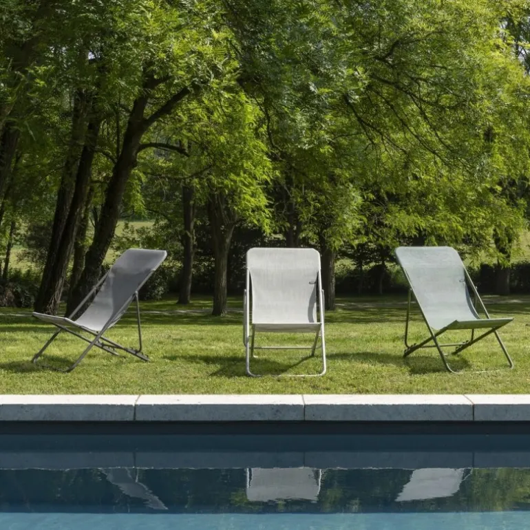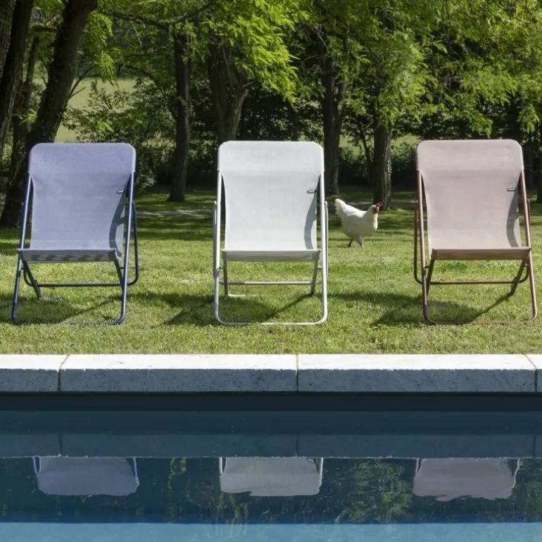Il vero lusso è anche una questione di spazio! La sedia sdraio MAXI TRANSAT vanta dimensioni generose e si adatta a tutte le esigenze di comfort. Inoltre, l’assenza di traverse nella parte anteriore della seduta offrirà alle vostre gambe un eccezionale comfort. La tela removibile è facilmente sostituibile per rinnovare la sedia a sdraio o semplicemente per cambiare look. La chiusura con cremagliera in quattro posizioni vi consentirà di regolare l’inclinazione dello schienale per ottenere il comfort ideale. Robusta, ultra compatta e facile da pulire, a suo agio in terrazza, in giardino, così come a bordo piscina. Facile da spostare e da riporre.