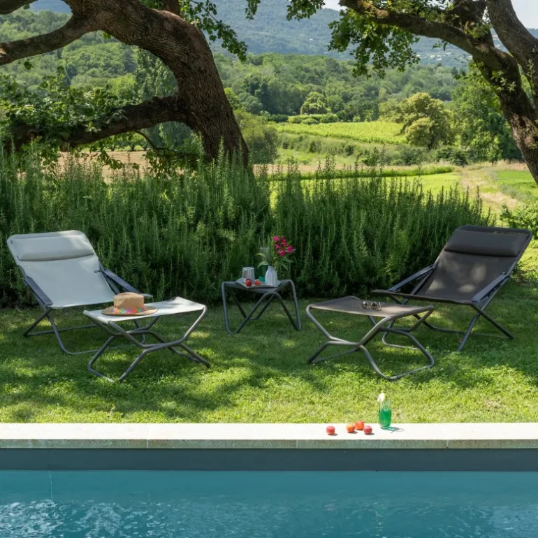 La TRANSABED vi offre il comfort di una vero lettino prendisole nel formato di una sedia sdraio. Confortevole grazie all’ampiezza generosa, ai braccioli con sistema a cinghie ultra-resistenti e alle posizioni semplici da regolare, altrettanto facile da utilizzare poiché è richiudibile e compatta. È la compagna inseparabile dei momenti di relax in giardino, terrazza o a bordo piscina! Abbinata al poggiagambe NEXT si trasformerà in un vero e proprio lettino prendisole per momenti di relax eccezionali.