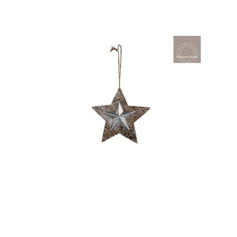 Stella in legno e latta da appendere h14,5 cm.