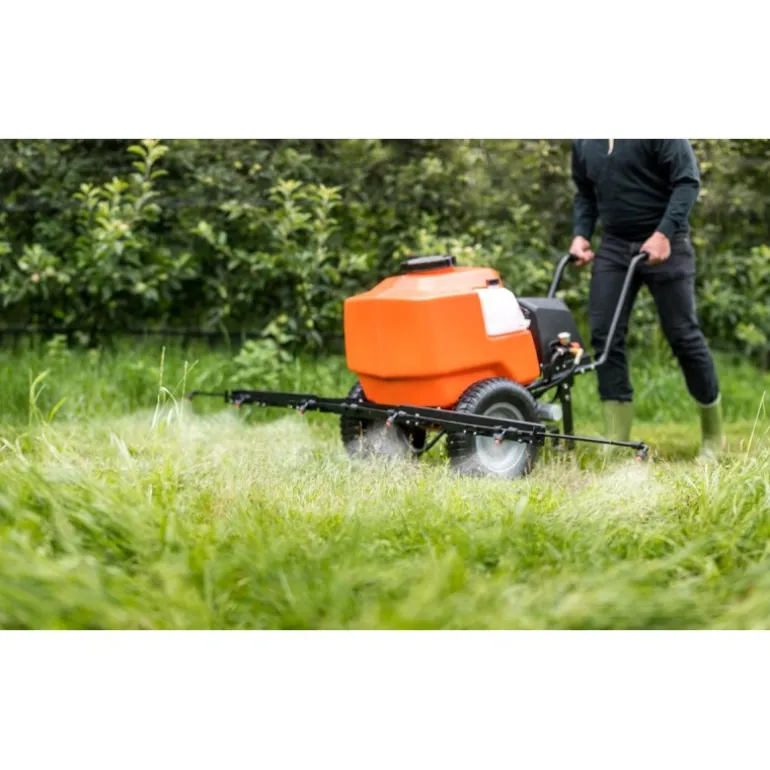 Barra di supporto in acciaio con astine in fibra di vetro e ugelli in plastica per getto a ventaglio.