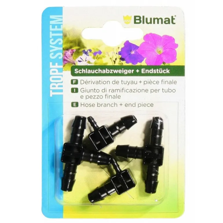 In blister da 2 pezzi Ideale per collegare i tubi di alimentazione da 8 mm di diametro. Il pezzo terminale chiude l’estremità aperta del tubo di alimentazione e allo stesso tempo il collegamento con l’ultimo Tropf Blumat dell’impianto.