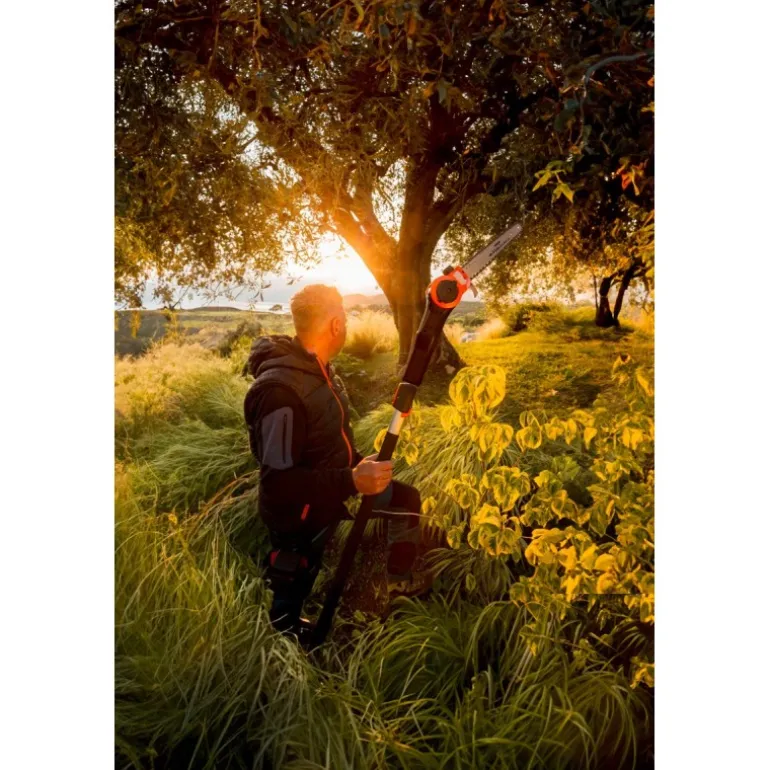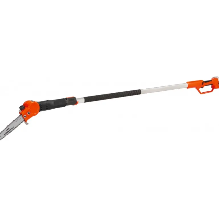 La motosega telescopica Magma E-300 LA 21 V è una novità della linea magma 21 V. Infatti, con la lunghezza di 215 – 305cm e la testa orientabile 55° permette un ottimo ingresso nella pianta, per raggiungere a maggiori altezze anche i rami più interni.