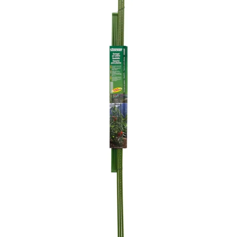 Kit struttura di sostegno per piante. Ideale per pomodori, cetrioli e piante rampicanti. – 3 aste in metallo plastificato termosaldato combinabili con 6 aste di supporto intermedio – Di durata pressoché illimitata – Estremamente pratico, forma una struttura a triangolo per un sostegno robusto Colore: verde Altezza: 150 cm Diametro: 8 mm