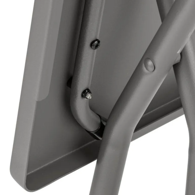 – Struttura: base con tubo in acciaio A.L.E. (Alto limite elastico) Ø 25 mm. Vernice 100% poliestere, elevata resistenza ai raggi UV. Sistema di progettazione che consente di ottenere il massimo dello spazio all’altezza delle gambe.
